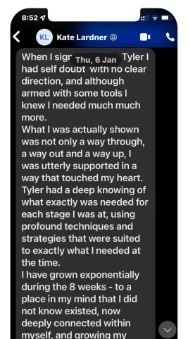 Tyler is an incredibly inspiring and supportive mentor. He has introduced me to invaluable business tools, personal growth and mindset practices, and contacts. Tyler’s effervescent energy, his insight, vision, and his creativity, are truly captivating and contagious. Tyler combines business, mindset, and spirituality. Tyler’s guidance has been an amazing support for me, and I have grown so much from the experience!